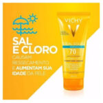 Com textura leve e de rápida absorção, o protetor solar Idéal Soleil Hydrasoft FPS 70 não deixa resíduos brancos na pele e possui ativos hidratantes como a glicerina e vitamina E que garantem uma pele macia e aveludada e é enriquecido com água termal mineralizante de Vichy.